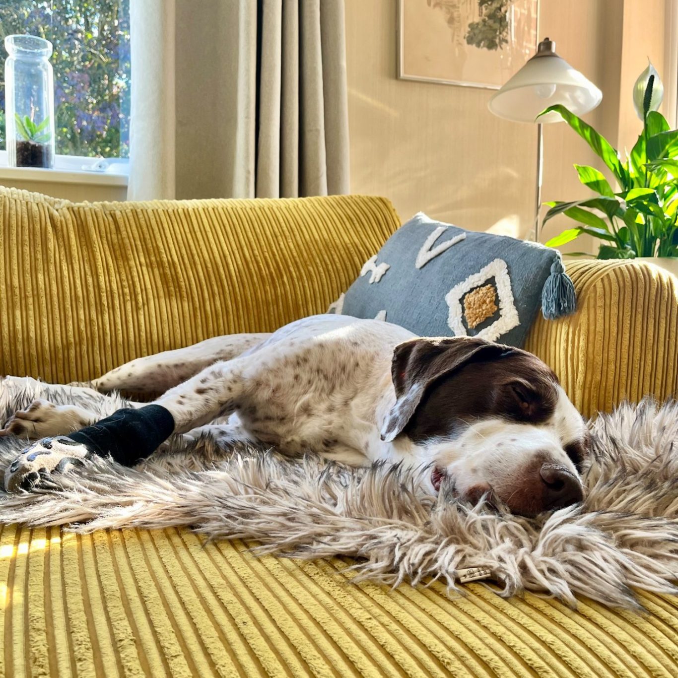 Ensuring your pets are comfortable in their own surroundings... just look at lovely Cooper... could he look anymore relaxed? He's loving a nap on his own sofa!